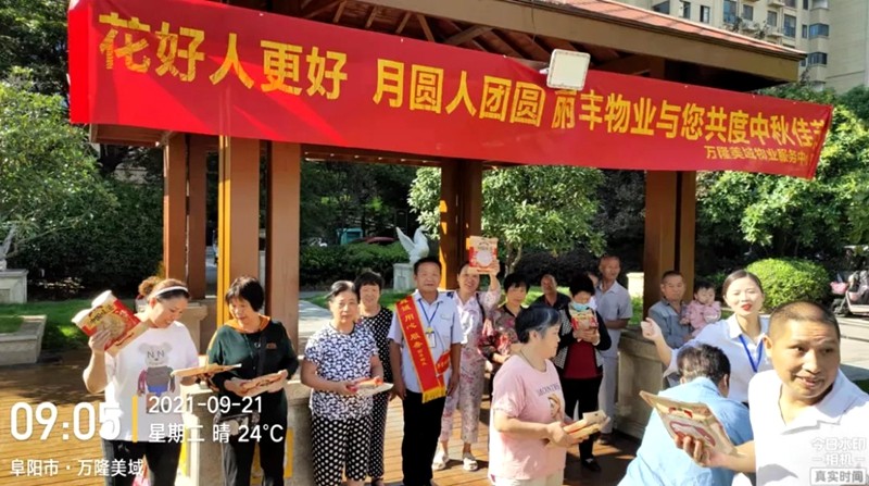 阜陽公眾網(wǎng)了解到 今年中秋節(jié) 阜陽市麗豐物業(yè)管理有限責(zé)任公司 定制了許多份月餅 于今天上午9點 在麗豐一品、萬隆美域 一里香溪、一里洋房 怡和莊園、正基首府 給業(yè)主送月餅