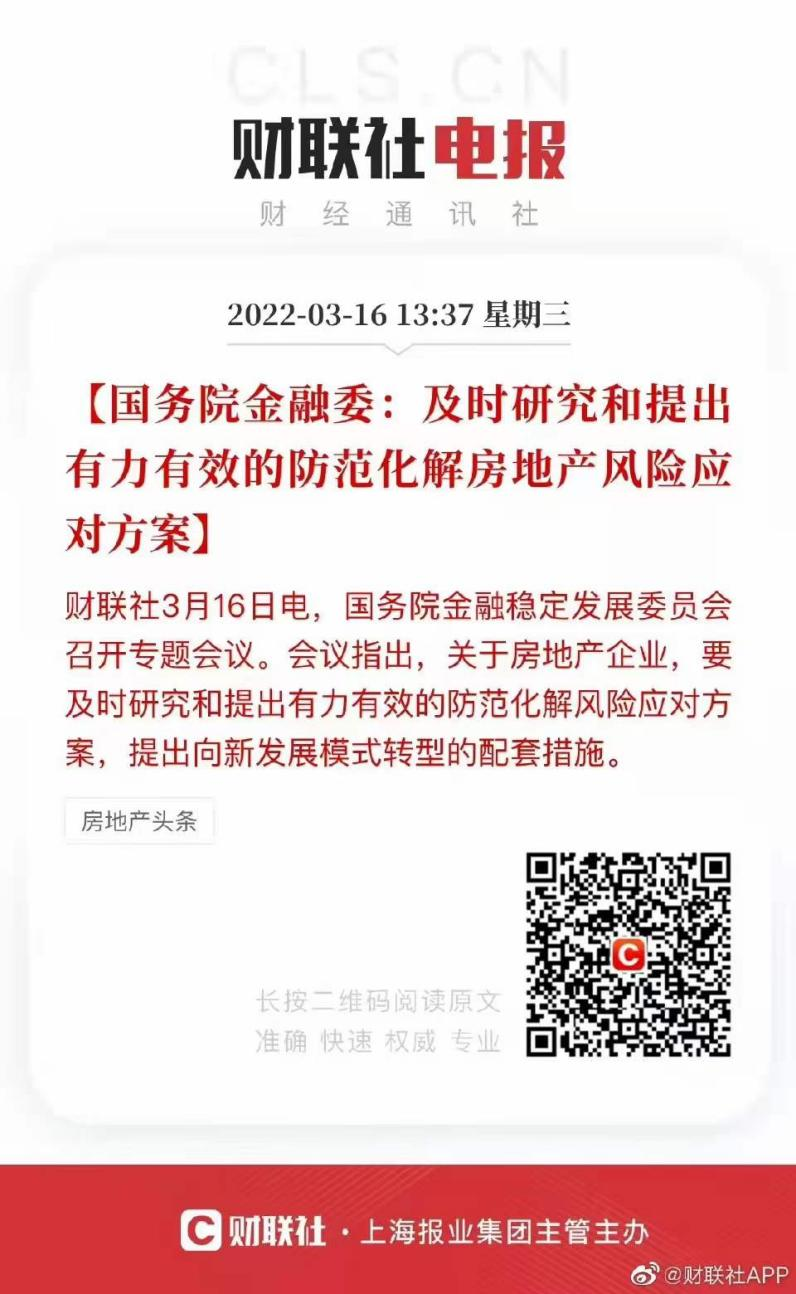 3月16日,國(guó)務(wù)院金融穩(wěn)定發(fā)展委員會(huì)召開(kāi)專(zhuān)題會(huì)議。會(huì)議指出,關(guān)于房地產(chǎn)企業(yè),要及時(shí)研究和提出有力有效的防范化解風(fēng)險(xiǎn)應(yīng)對(duì)方案,提出向新發(fā)展模式轉(zhuǎn)型的配套措施。