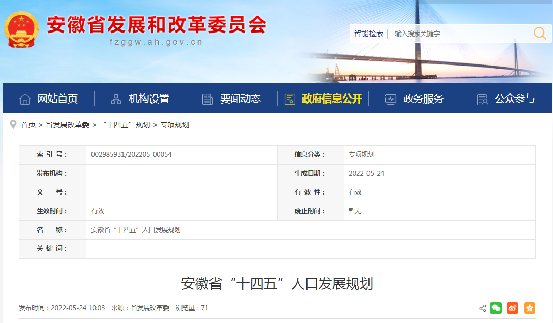 5月24日,安徽省發(fā)改委網(wǎng)發(fā)布安徽省“十四五”人口發(fā)展規(guī)劃。規(guī)劃提出,積極穩(wěn)妥實施三孩生育政策。
