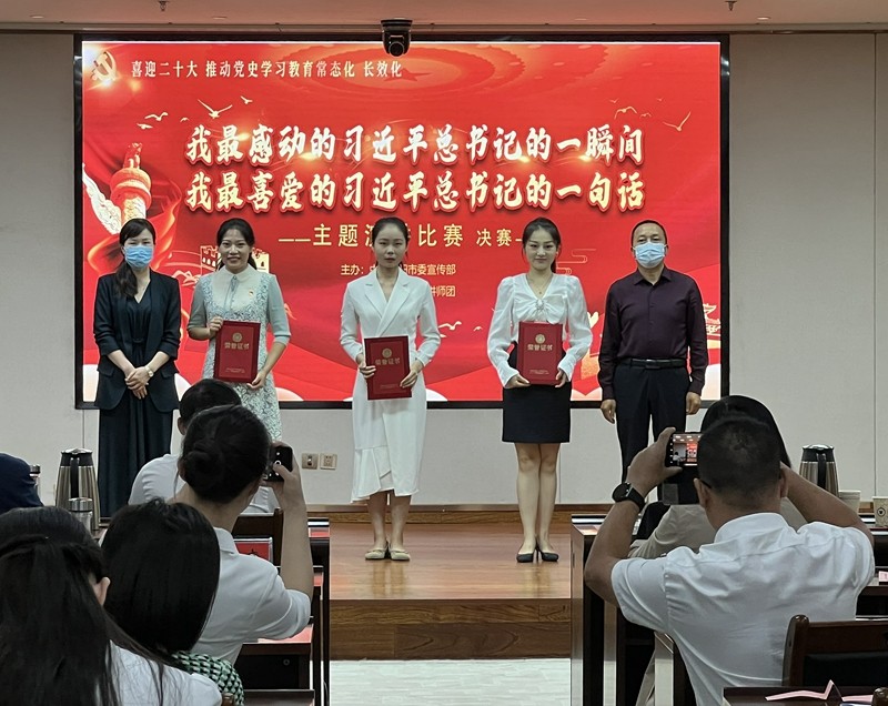 9月23日上午,中共阜陽市委宣傳部、中共阜陽市委講師團攜手阜陽市演講學(xué)會開展的“我最感動的習(xí)近平總書記的一瞬間 我最喜愛的習(xí)近平總書記的一句話”主題演講比賽決賽在市委綜合樓會議廳舉行。市委常委、宣傳部部長 白曉云、市委宣傳部副部長 燕少紅、市委副秘書長、市委政研室主任 王文斌等人出席了活動。