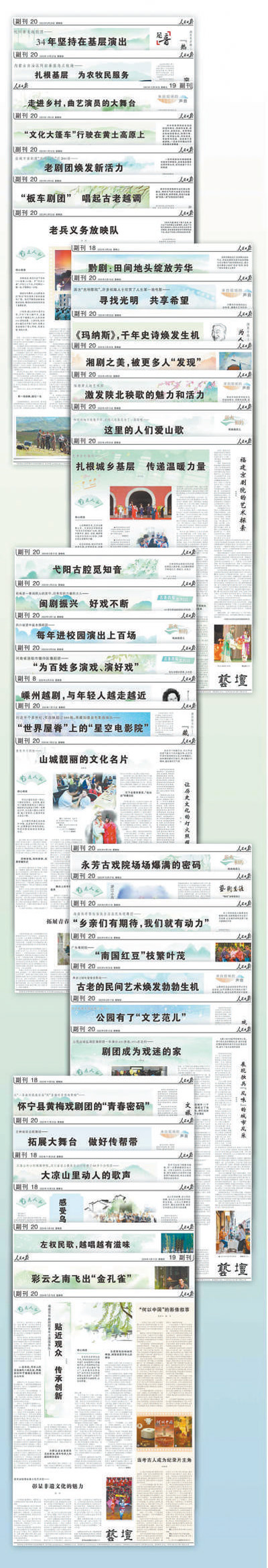 2022年9月,“藝近人和”開欄,將目光投向基層文藝實踐,把頭條版面留給堅持在基層演出、為基層群眾綻放文藝之花的文藝院團和文藝工作者。截至目前,該欄目已經(jīng)推出35篇報道,覆蓋了26個省份,涉及戲曲、音樂、舞蹈、電影、曲藝、皮影、木偶等多種藝術(shù)門類,獲得了方方面面的關(guān)注、支持乃至贊許。新春將至,本報記者重訪其中7個文藝團體,體驗他們扎根基層、服務(wù)群眾的火熱新實踐,與讀者一起感受新年的文藝新氣象。 ——編 者