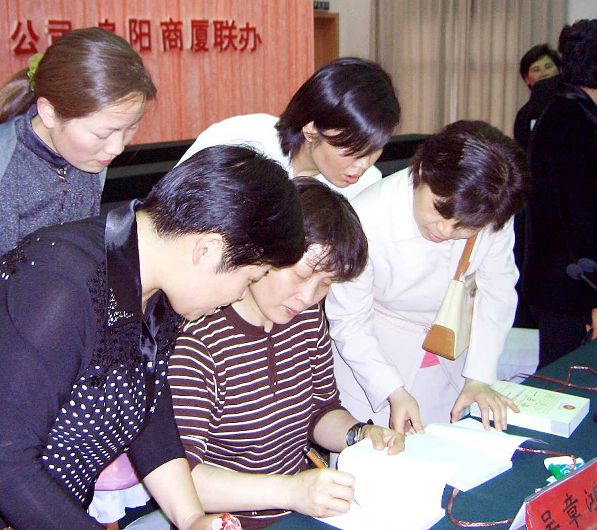 當(dāng)年的報(bào)告會(huì)現(xiàn)場(chǎng) 小滿時(shí)節(jié),麥浪金黃。我走進(jìn)阜陽(yáng)商廈董事長(zhǎng)張志鋒的辦公室,張總說(shuō):“人生如夢(mèng)?。「逢?yáng)商廈人20多年前請(qǐng)你來(lái)作《發(fā)現(xiàn)母親》家庭教育報(bào)告會(huì)。如今,已有366名職工的孩子考上大學(xué),其中37名考取研究生,18名上了中國(guó)前10的名?!簧偃艘呀?jīng)走上工作崗位,成為工程師、教授。”談話后,我抽出時(shí)間,探訪了阜陽(yáng)商廈的追夢(mèng)人!