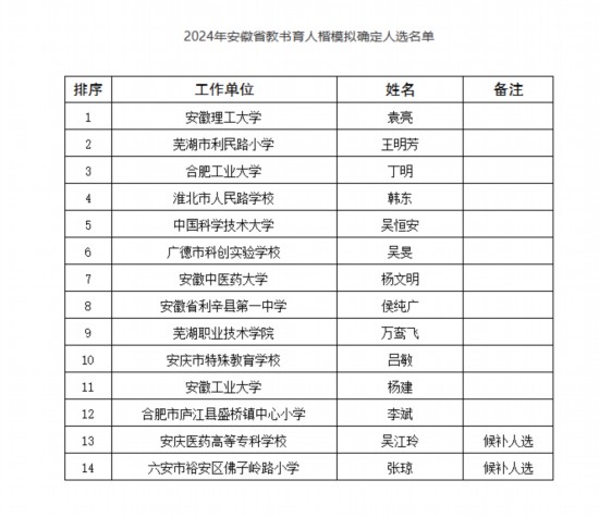 | 安徽省教書育人楷模遴選結果公示 12人上榜 |