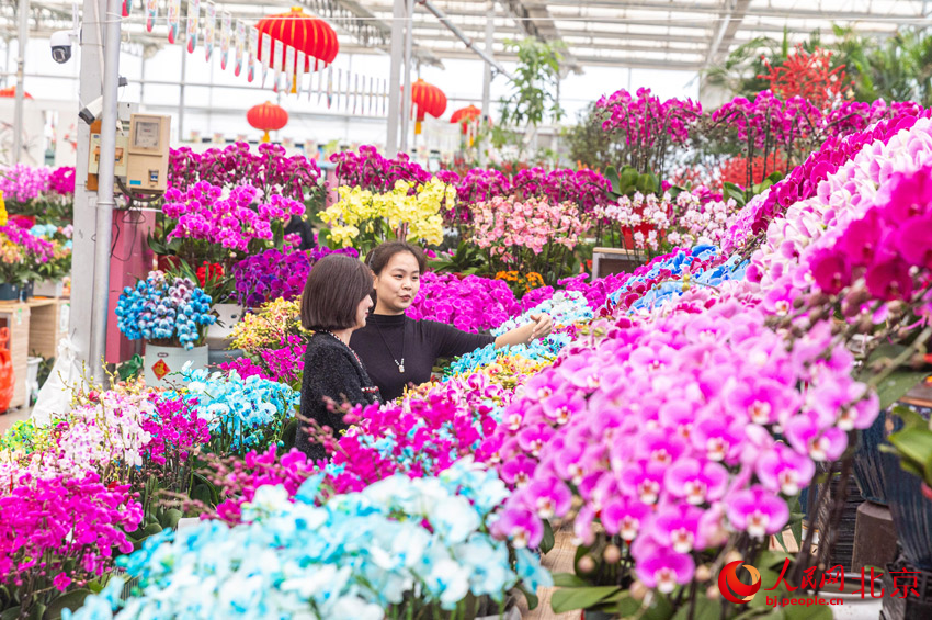 消費者在豐臺玉泉營花卉市場采購鮮花。人民網(wǎng)記者 鮑聰穎攝