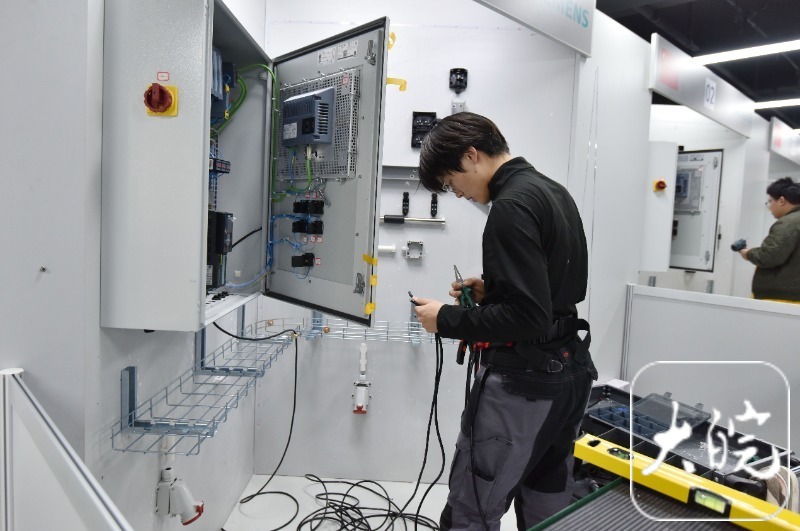 大皖新聞?dòng)?nbsp; 12月21日,在阜陽(yáng)技師學(xué)院,幾名參加技能比賽的參賽選手,在精心操作,認(rèn)真比賽。12月20日到22日,由省人社廳、省教育廳、省工信廳主辦,安徽省第十屆職業(yè)技能大賽暨長(zhǎng)三角豫粵六省市職業(yè)技能邀請(qǐng)賽在阜陽(yáng)舉行。