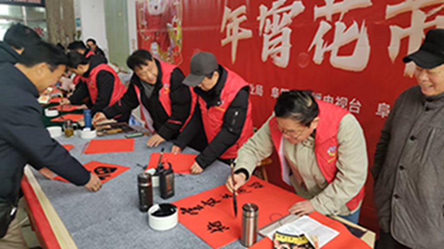 阜陽市第一屆年宵花市送春聯(lián)活動(dòng)在大美陽光花卉大市場(chǎng)舉行