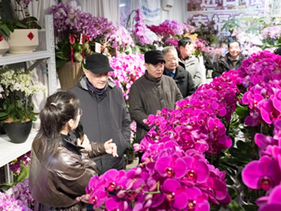 在吳淑賢的帶領(lǐng)下,張世友等一行一起參觀了陽光花卉市場(chǎng)各分會(huì)場(chǎng),攤位花展艷麗芬芳,爭(zhēng)色斗艷,喜迎新春。